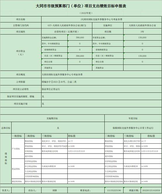 填写《项目绩效目标申报表》,随同预算上报,是财政局在批复项目预算时同步批复绩效目标,beat365官方网站大全_旧版彩票365下载_mobile 365365051人民政府外事办公室在分解下达本单位项目预算资金时,同步分解下达绩效目标。