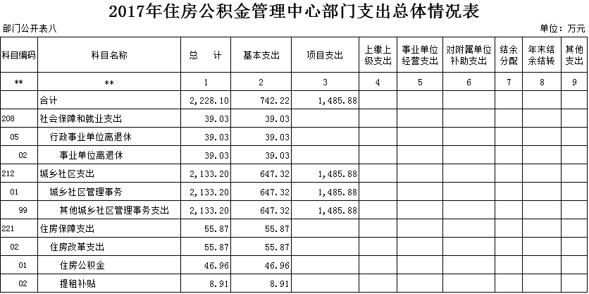 | 2017年住房公积金管理中心部门收支总体情况表 | |||