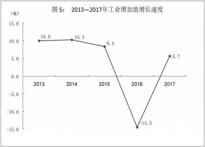初步统计,全年全市规模以上工业企业工业增加值比上年增长5.7%。表2:2017年规模以上工业增加值增长速度