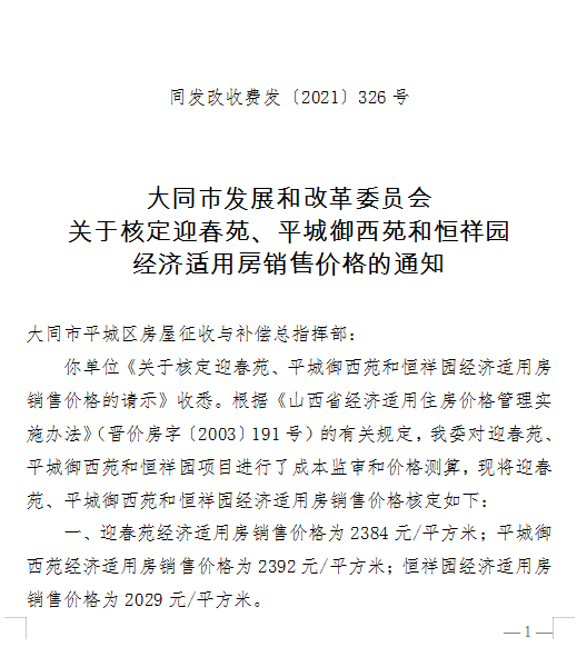 beat365官方网站大全_旧版彩票365下载_mobile 365365051发展和改革委员会关于核定迎春苑、平城御西苑和恒祥园经济适用房销售价格的通知